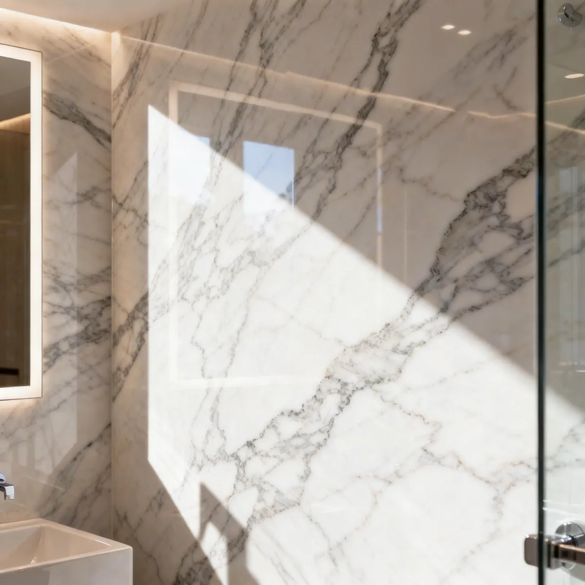 Estetika naravnega kamna: Na voljo v široki paleti vzorcev, od klasičnega Calacatta marmorja do sodobnih betonskih tekstur.